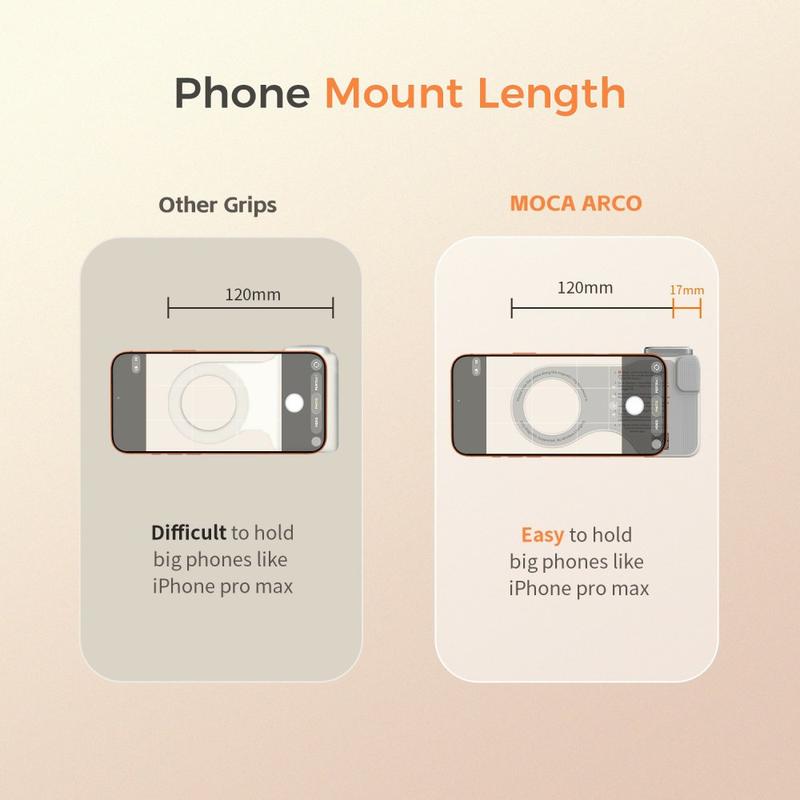MOCA ARCO este perfect dacă doriți mai mult control și confort atunci când utilizați iPhone-ul pentru fotografii, videoclipuri sau crearea de conținut. În loc să țineți telefonul direct în mână, beneficiați de o prindere similară cu cea a unei camere foto, funcții rapide de control de la distanță și suport suplimentar pentru iluminare, totul într-un singur accesoriu. Este deosebit de util pentru utilizatorii care înregistrează des și doresc o configurație de filmare mobilă mai curată și mai practică.