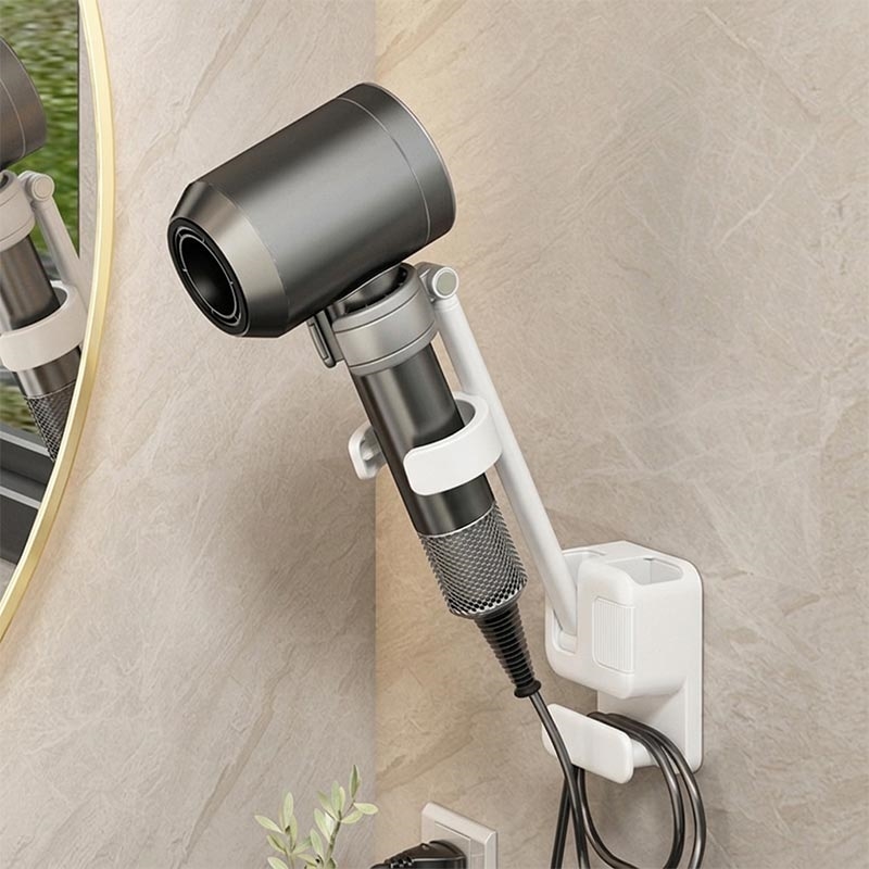 Suport reglabil pentru uscător de păr, cu montare pe perete, fără găurire, cu organizator pentru cabluri