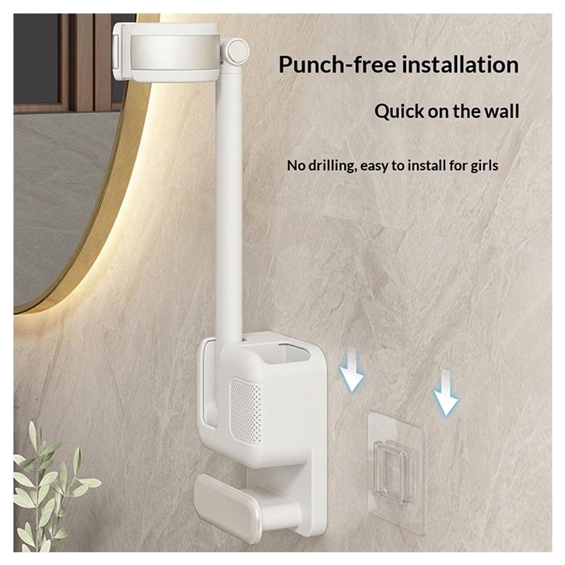 Fabricat din plastic ABS durabil, suportul oferă o structură robustă, cu o capacitate mare de greutate și performanțe fiabile în fiecare zi. Unghiul său reglabil vă permite să poziționați uscătorul de păr mai confortabil, în funcție de înălțimea dvs. și de nevoile de coafare, în timp ce designul universal se potrivește unei game largi de forme și dimensiuni de uscătoare de păr. Funcția integrată de gestionare a cablurilor ajută, de asemenea, la reducerea dezordinii și menține cablurile ordonate, făcând baia dvs. să arate mai curată și mai organizată.