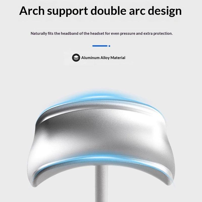 Suportul pentru cap cu arc dublu este modelat pentru a urma curba naturală a benzii de susținere a căștilor, ajutând la distribuirea mai uniformă a greutății în timp ce căștile se odihnesc pe suport. Acest design poate ajuta la reducerea presiunii inutile asupra benzii de susținere și susține utilizarea pe termen lung a căștilor. Este deosebit de util pentru modelele over-ear, care beneficiază de o depozitare mai stabilă și mai echilibrată între sesiunile de ascultare.