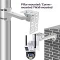 Acest suport acceptă montarea pe perete, pe colț și pe stâlp, ceea ce îl face potrivit pentru diverse scenarii de instalare. Se adaptează cu ușurință la nevoile de supraveghere rezidențiale, comerciale și industriale, fără a necesita mai multe accesorii de montare.