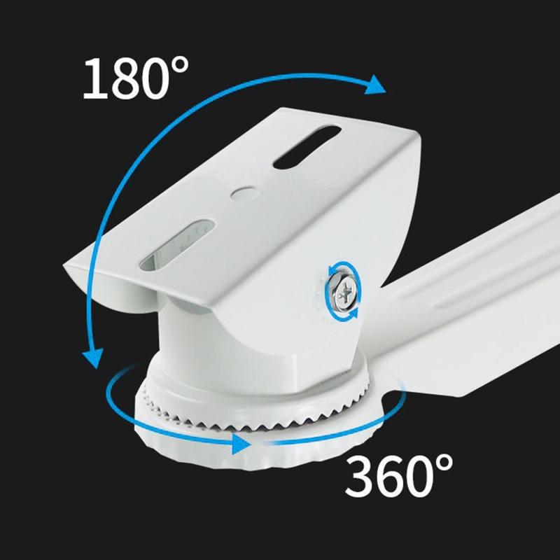 Suportul are o rotație de 360 de grade, permițând ajustarea precisă a unghiurilor camerei. Această flexibilitate ajută la reducerea unghiurilor moarte și asigură că zona monitorizată este întotdeauna în câmpul vizual al camerei.