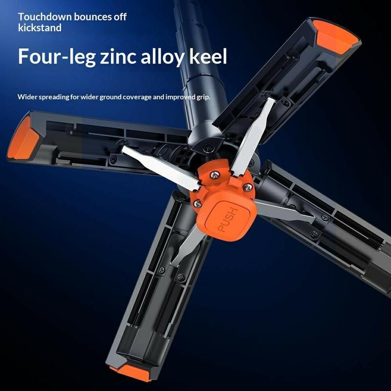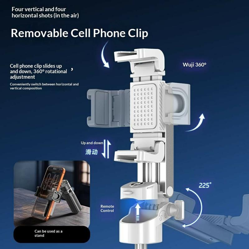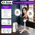 Picioarele trepiedului cu deschidere automată asigură stabilitate rapidă atunci când este așezat, în timp ce designul extensibil și suportul rotativ pentru telefon facilitează trecerea între diferite unghiuri și formate de fotografiere. Telecomanda Bluetooth inclusă te ajută să faci fotografii fără a folosi mâinile, iar cele două lumini de umplere pătrate adaugă luminozitate suplimentară pentru selfie-uri, apeluri video și înregistrări.