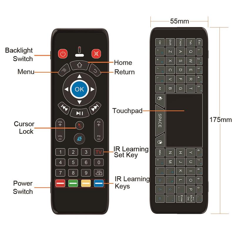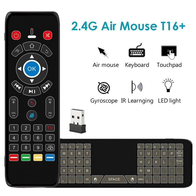 T16+ oferă un control puternic și flexibil, cu libertate wireless, introducere de date de la tastatură, precizie de mouse aerian și învățare IR - totul într-o singură telecomandă ergonomică. Este un upgrade ideal pentru divertismentul inteligent acasă și controlul mai multor dispozitive.
