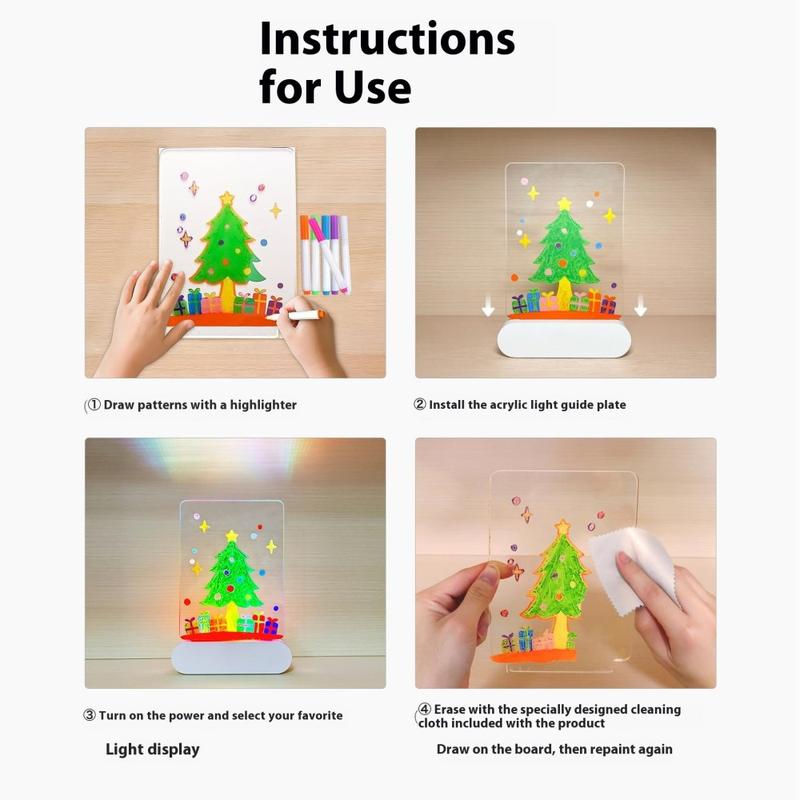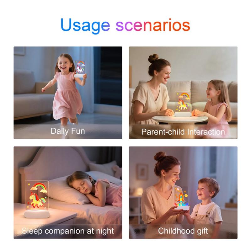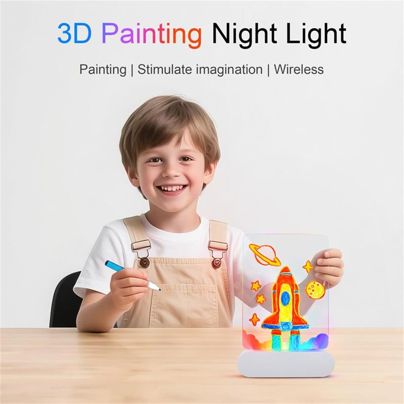 Tablă de desen LED reîncărcabilă cu 7 pixuri colorate - 3D acrilic de desen și lumină de noapte Memo