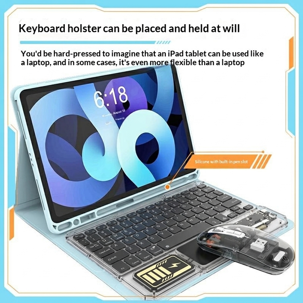 Set tastatură și mouse Bluetooth transparent KB333 - Tastatură fără fir cu 3 canale și iluminare RGB, dotată cu touchpad