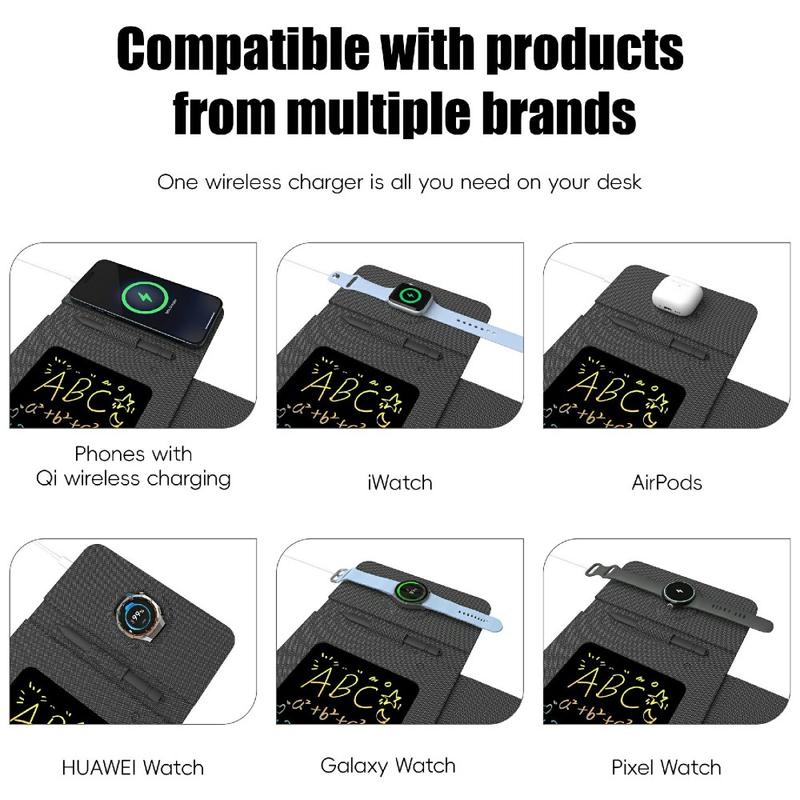 - Design 4-în-1: pad de încărcare wireless, suport pentru telefon, mouse pad și tablă de scris