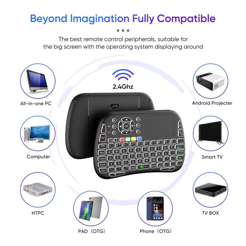 Controlați dispozitivele inteligente mai confortabil cu combinația de tastatură wireless mini M9 și touchpad. Concepută ca o tastatură compactă portabilă, aceasta combină o dispunere QWERTY completă, navigare cu touchpad și comenzi multimedia într-un singur dispozitiv portabil. Fie că navigați pe un dispozitiv Android TV, navigați pe un proiector inteligent sau controlați un PC media, M9 face tastarea, derularea și navigarea mult mai rapide decât utilizarea unei telecomenzi standard.