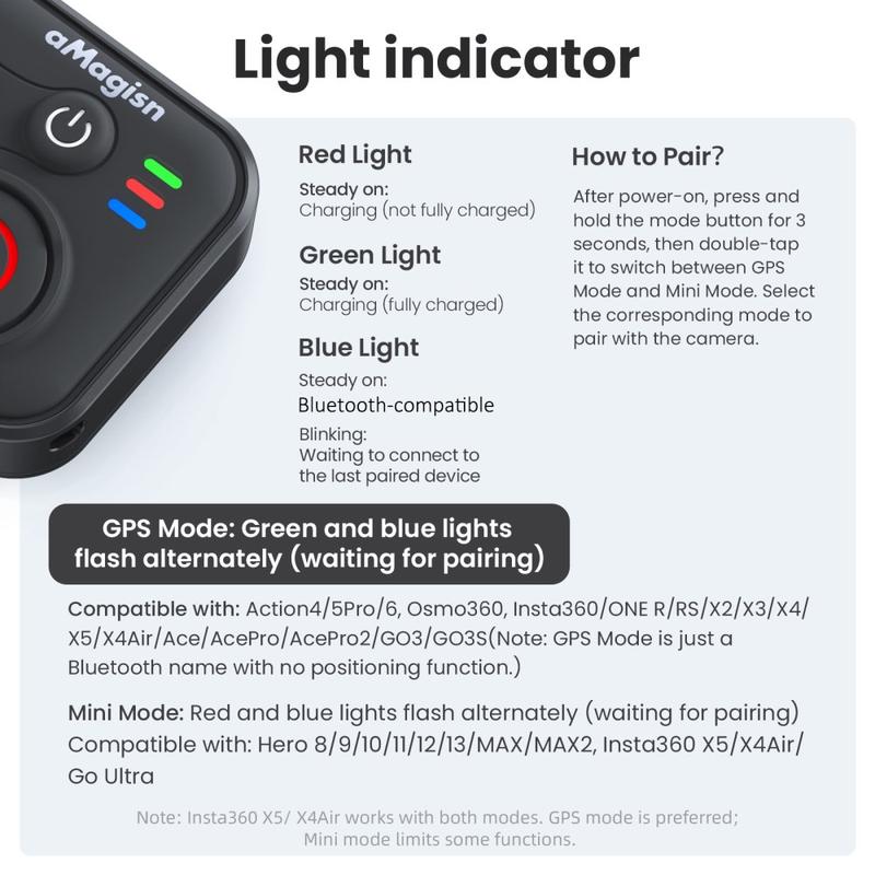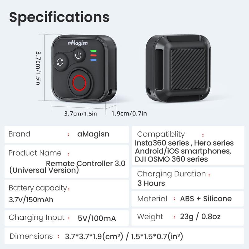 Telecomandă Bluetooth universală Amagisn pentru telefoane iOS și Android, camere de acțiune Insta360, GoPro Hero și DJI - Controler foto și video cu un singur buton