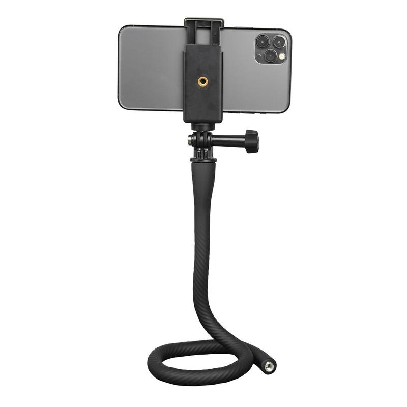 Include un adaptor de 1/4" și un clip pentru telefon, compatibil cu smartphone-uri de toate mărcile și camere de acțiune (seria GoPro Hero, seria DJI Action și multe altele). Orificiul filetat de 1/4" vă permite, de asemenea, să îl atașați la un trepied.