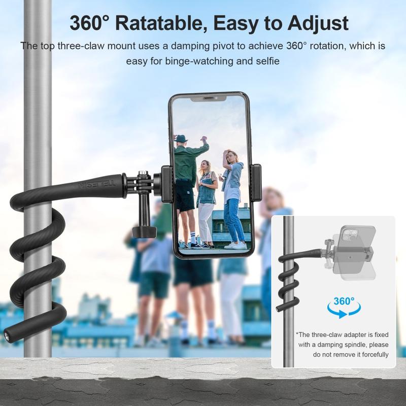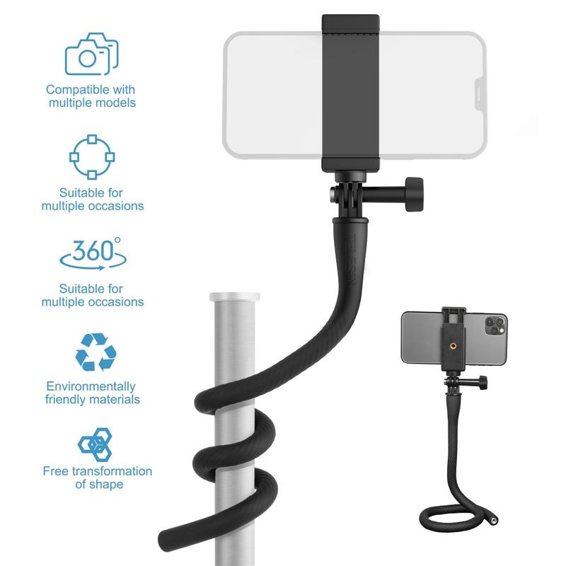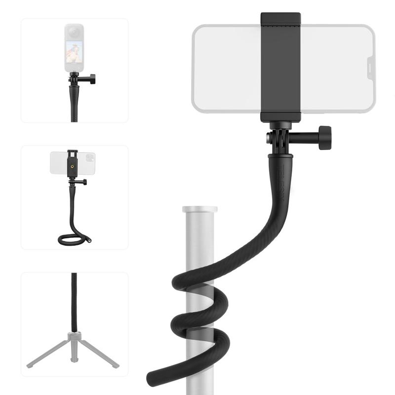 Telesin TE-FM-003 are un design flexibil, cu bandă de aluminiu flexibilă încorporată, care vă permite să îl fixați pe stâlpi, balustrade, ghidon, crengi sau alte obiecte pentru unghiuri de filmare creative.