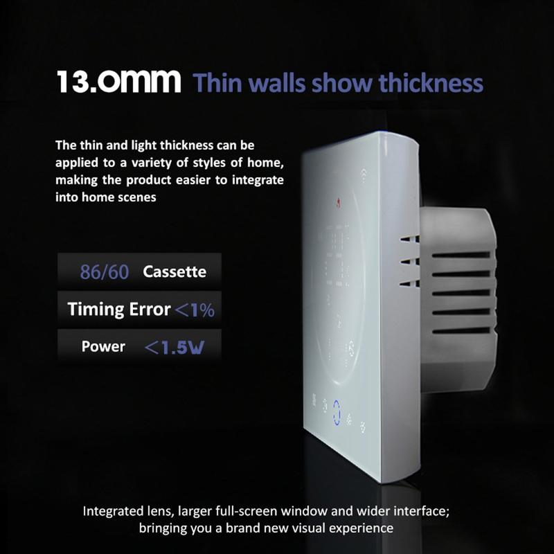 Termostatul inteligent BHT-008GCL oferă un amestec de precizie, confort și design modern, ceea ce îl face o alegere excelentă pentru proprietarii de locuințe care doresc să își modernizeze sistemele de control al încălzirii. Compatibilitatea sa cu o gamă largă de tensiuni și cutii de instalare standard asigură o integrare ușoară, în timp ce controlul precis al temperaturii contribuie la economisirea energiei și la un confort sporit.