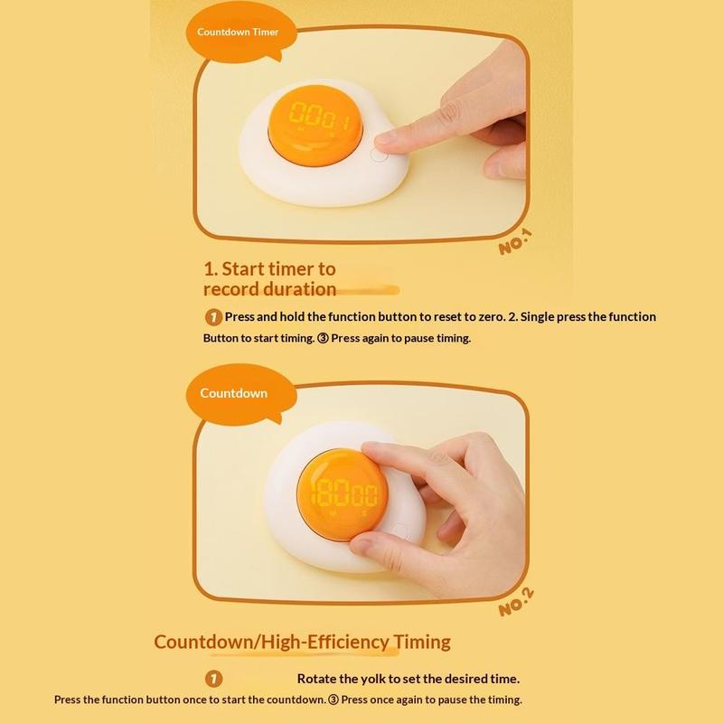 - Modul de numărătoare inversă: rotiți gălbenușul de ou pentru a seta timpul dorit, apăsați o dată butonul funcțional pentru a porni, apăsați din nou pentru a pauza