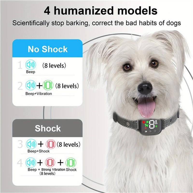 Dresează-ți câinele în siguranță cu ajutorul colierei Touch Screen Anti-Bark, concepută pentru a reduce lătratul excesiv folosind doar sunet și vibrații - fără șocuri. Dispunând de două motoare de vibrații, moduri personalizabile și un afișaj color, asigură un dresaj eficient și uman.