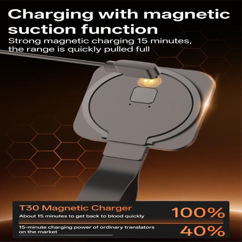 Încărcarea este simplă datorită metodei de încărcare magnetică, iar bateria de 65 mAh cu consum redus de energie este concepută pentru o funcționare eficientă. Cu conectivitate 5.2 compatibilă cu Bluetooth, T30 este conceput pentru a se conecta în mod fiabil cu dispozitivele compatibile, pentru un flux de lucru convenabil de traducere - ideal atunci când doriți un instrument ușor, care nu ocupă spațiu.