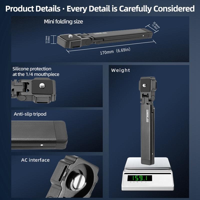 Trepiedul magnetic STARTRC are un design subțire și pliabil, care se potrivește cu ușurință în buzunar sau geantă. Când este pliat, măsoară doar 170 x 35,8 x 12,5 mm, fiind ideal pentru călătorii, fotografii în aer liber și transportul zilnic.