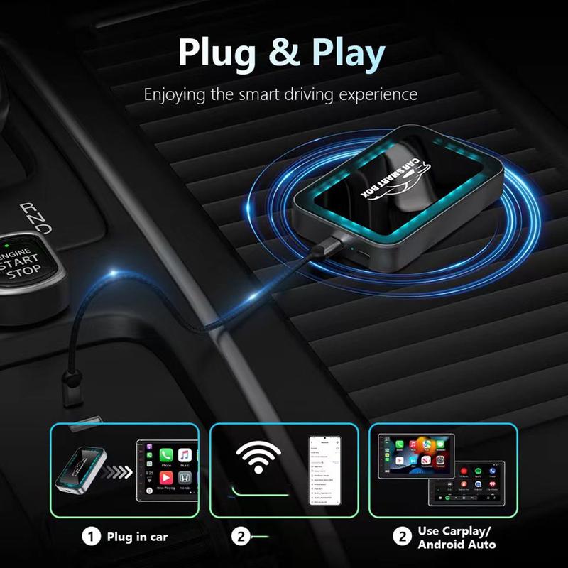 - Actualizare fără fir: Convertiți CarPlay sau Android Auto cu fir într-o conexiune wireless, păstrând tabloul de bord fără cabluri.