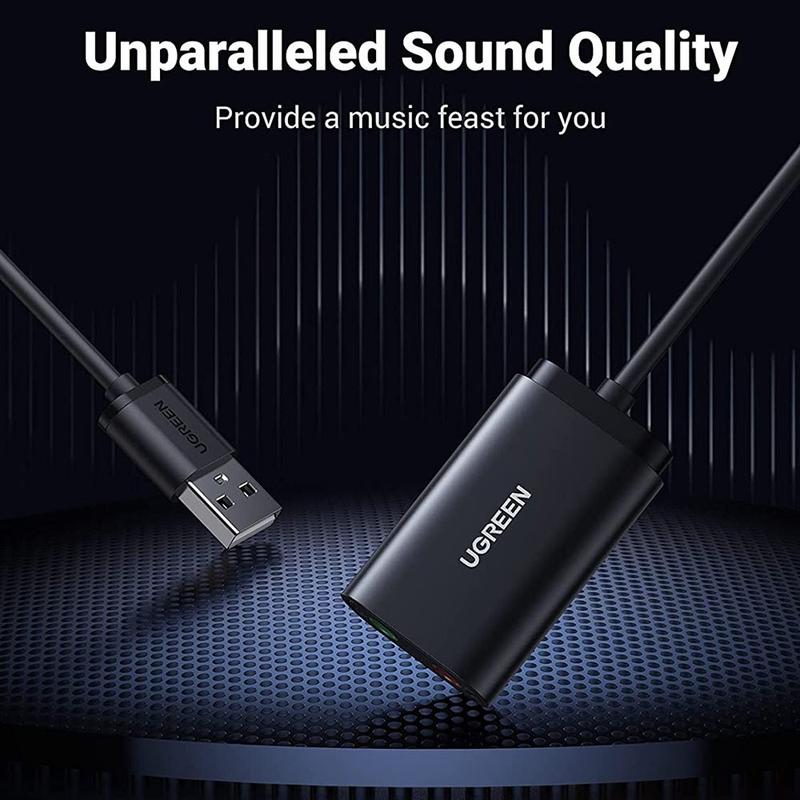 UGREEN 30724 Adaptor audio USB Audio Extern Stereo Audio Sound Card cu mufă de 3,5 mm pentru căști și microfon pentru Windows Mac Linux PC Laptop PS5 - Negru