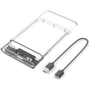 USB 3.0 2.5" SATA HDD/SSD Enclosure - carcasă transparentă pentru hard disk extern cu UASP, până la 5 Gbps, indicator LED, cablu USB-A de 50 cm (7 mm / 9,5 mm)