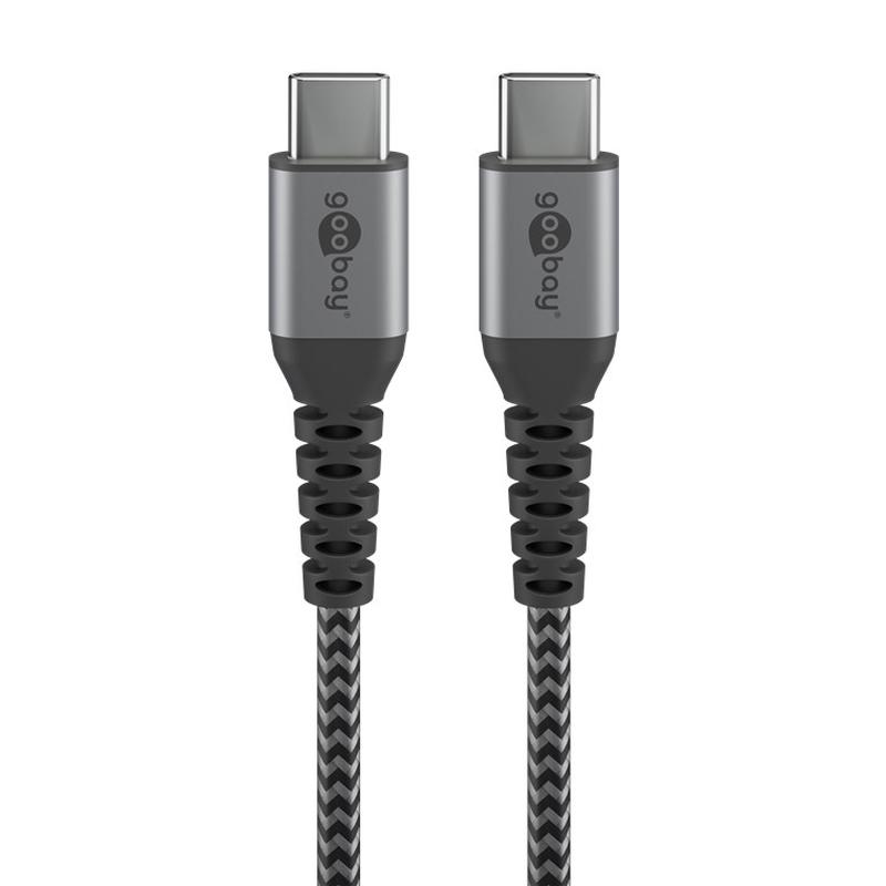 Goobay USB-C™-laddningskabel för supersnabb laddning med maximalt 3 A, USB-C™-kabel med höghastighetsdataöverföring upp till 480 Mbit/s, Den flätade textilkabeln med optimerat böjskydd på metallkontakterna är skyddad mot kabelbrott och konstruerad för över 10 000 böjningscykler. De förstärkta metallkontakterna och textilmanteln gör USB-C™-till-USB-C™-kabeln extremt tålig och hållbar. Goobay Type-C-laddningskabelns flätade textilhölje ger en behaglig känsla och är skonsam mot känsliga ytor. Den robusta USB-C™-laddningskabeln med längden 0,5 m är extra kort för att överbrygga mindre avstånd, t.ex. i en bil eller lastbil. USB Type-C-kabeln kan anslutas till smarttelefoner, datorer, bärbara datorer, surfplattor etc. (stöder även laddningsfunktion för Apple MacBook).