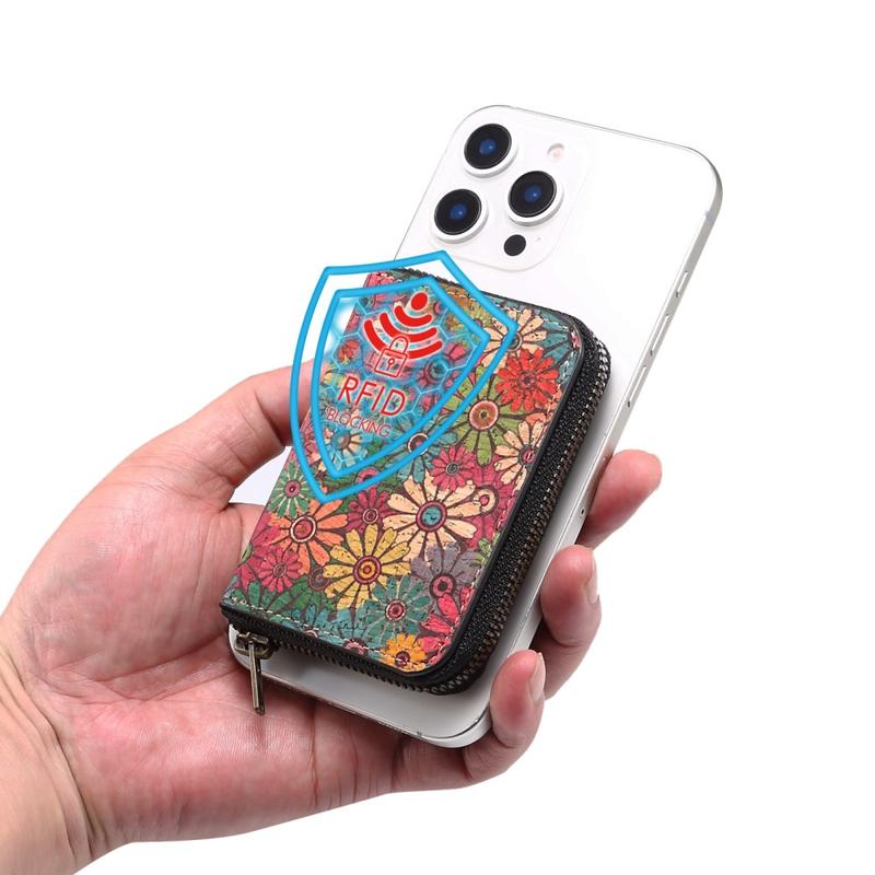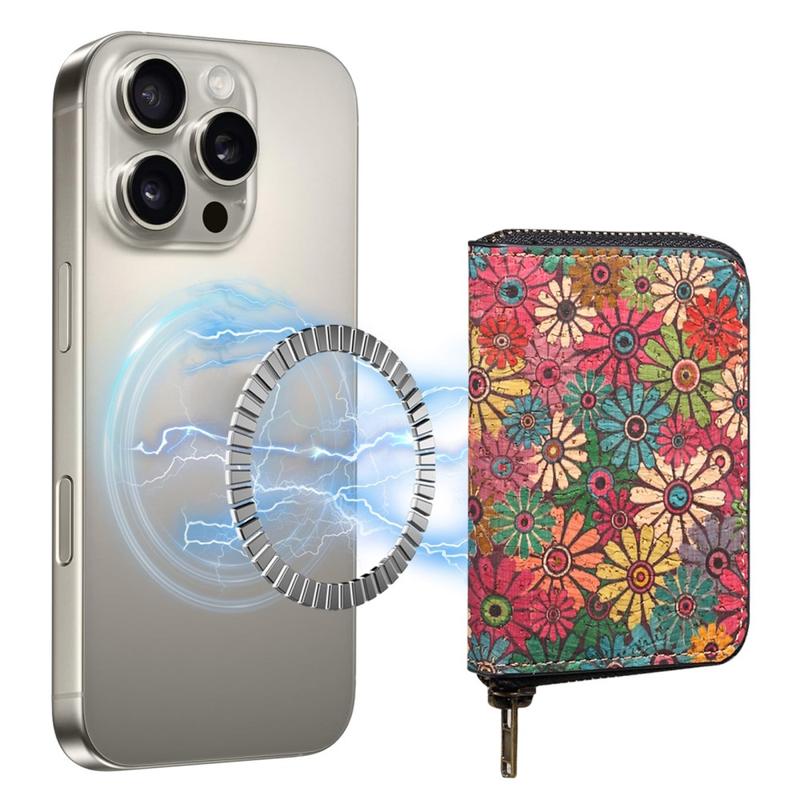V16 Suport card magnetic cu fermoar - Portofel cu model floral, compatibil MagSafe