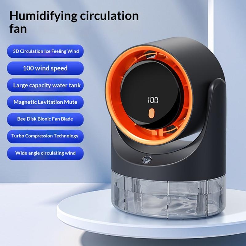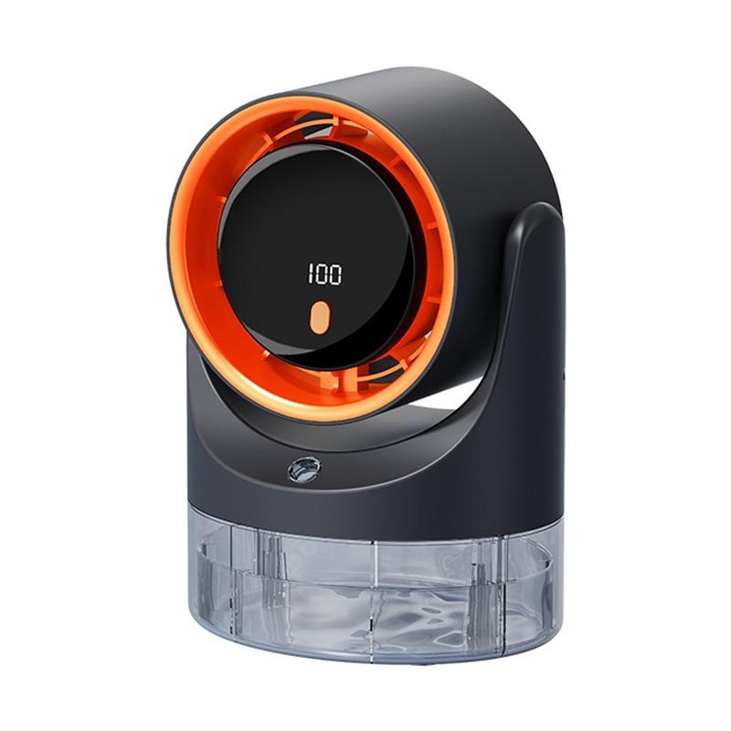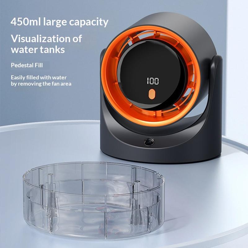 Bucurați-vă de mai multă răcoare și confort cu acest ventilator portabil de birou cu pulverizare, alimentat prin USB, un dispozitiv practic 3-în-1 care combină fluxul de aer, umidificarea prin pulverizare și circulația aerului într-un design compact. Cu un rezervor de apă vizibil de 450ml și setări reglabile ale intensității vântului, este ideal pentru birouri, noptiere, birouri de acasă și camere mici.