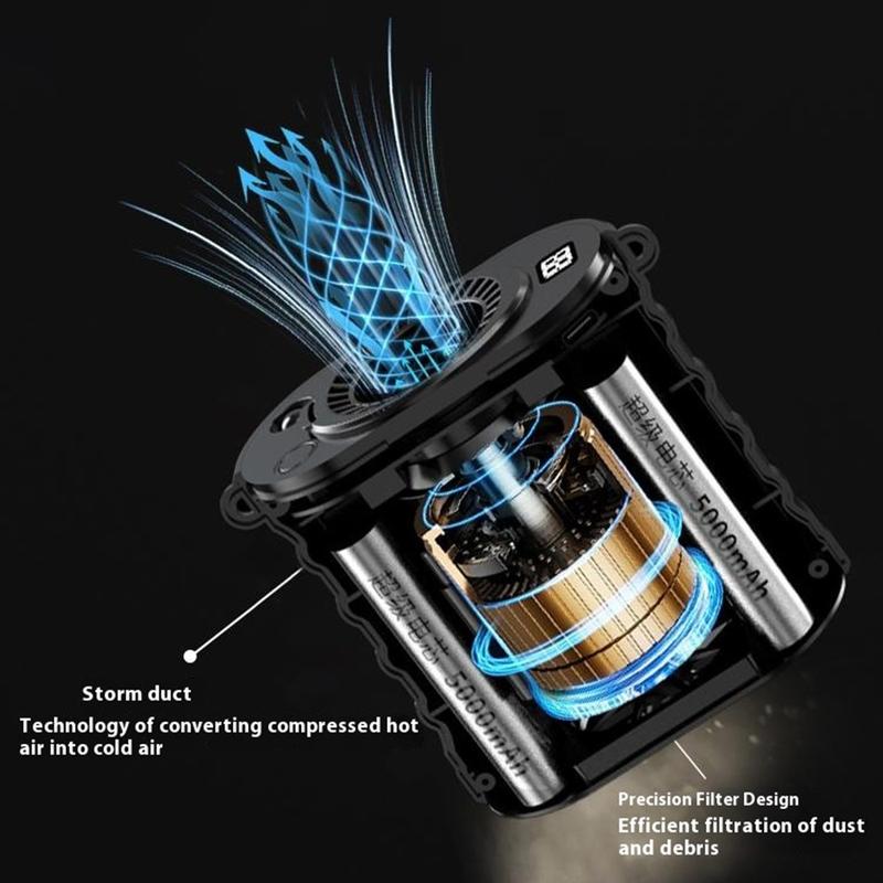 Rămâneți mai răcorit în mișcare cu ventilatorul portabil pentru talie G30, conceput pentru a vă oferi un flux de aer fără a fi nevoie să-l țineți în mână, în timpul lucrului, al activităților în aer liber și al călătoriilor. Purtați-l la centură pentru o răcire constantă sau așezați-l pe suportul inclus pentru a-l utiliza pe birou acasă, la serviciu sau într-un cort. Un motor cu turbină fără perii, de mare viteză, de 15000 RPM, oferă un flux de aer puternic, iar cele 5 niveluri de viteză vă permit să reglați briza în funcție de schimbările de temperatură și de intensitatea activității.