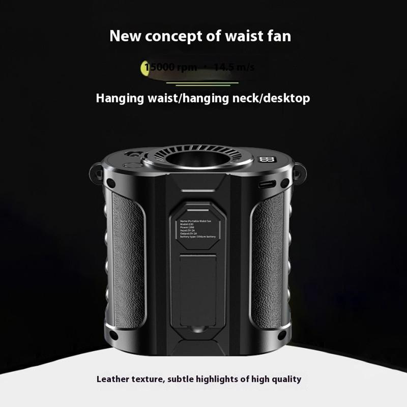 Ventilator portabil pentru talie G30 - 8000 mAh, 5 viteze, suport de birou, lumină LED, funcție de încărcător portabil, 15000 RPM