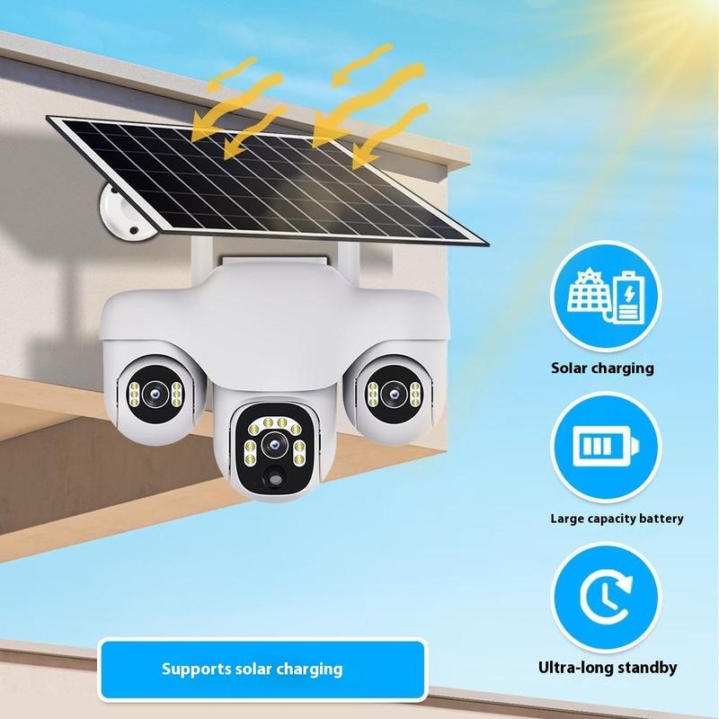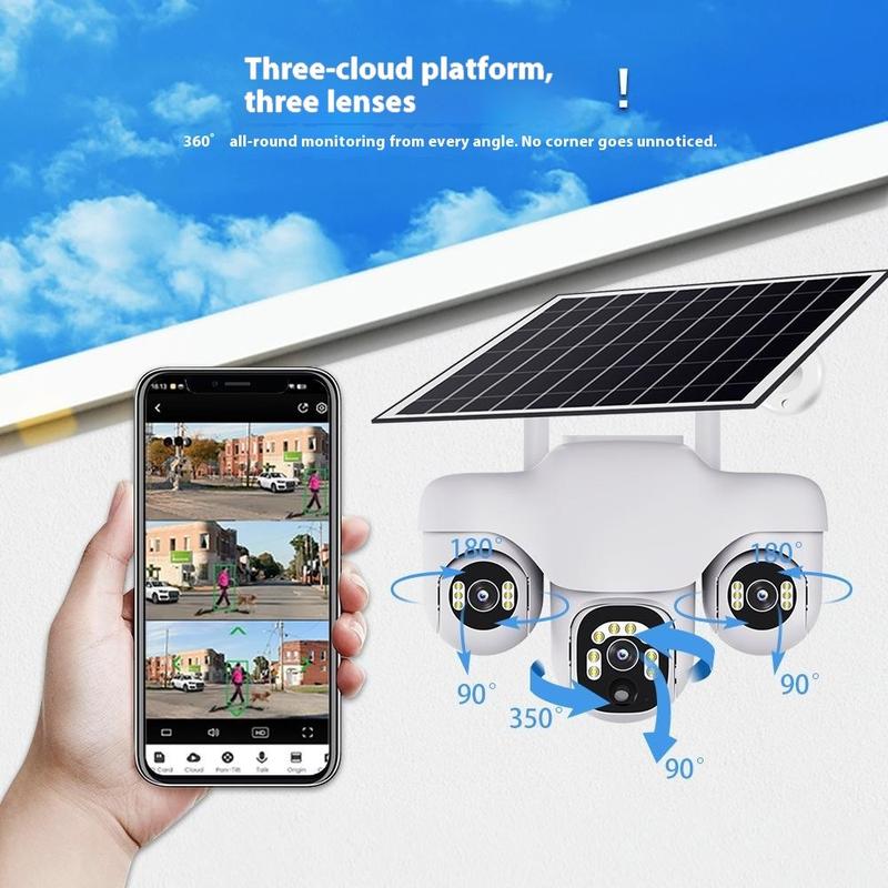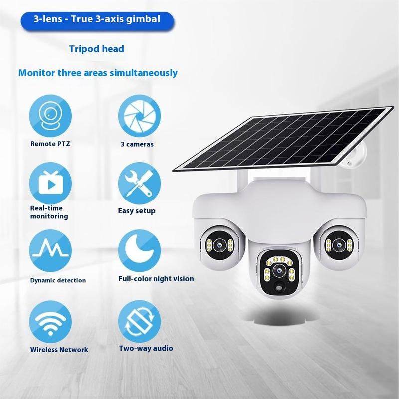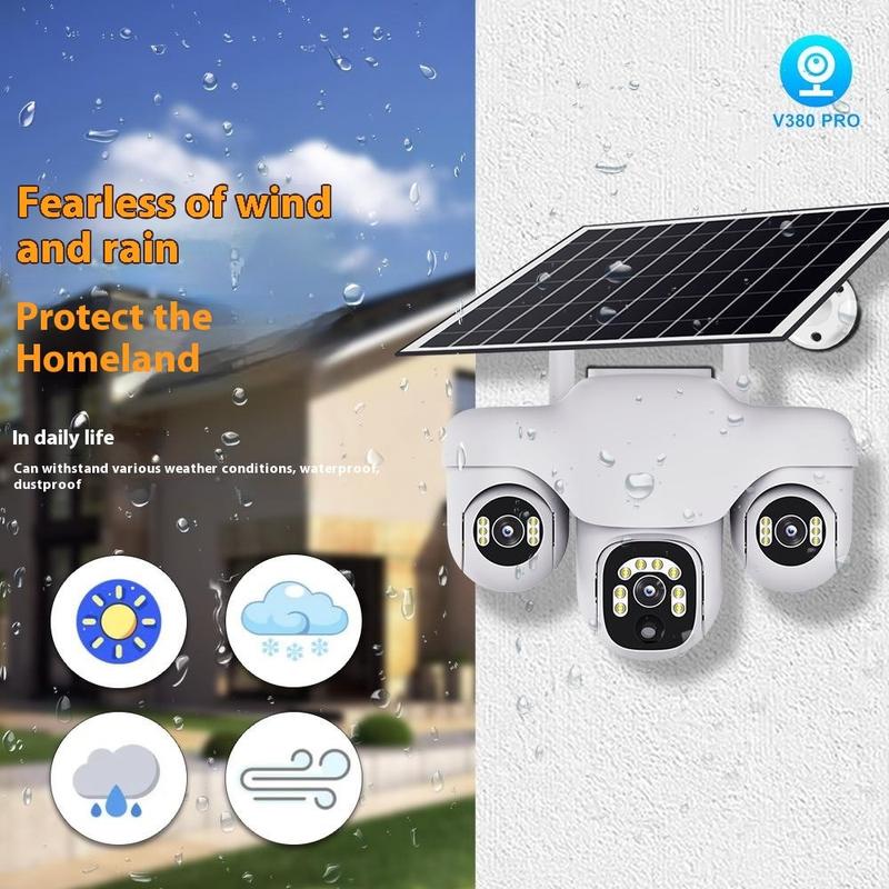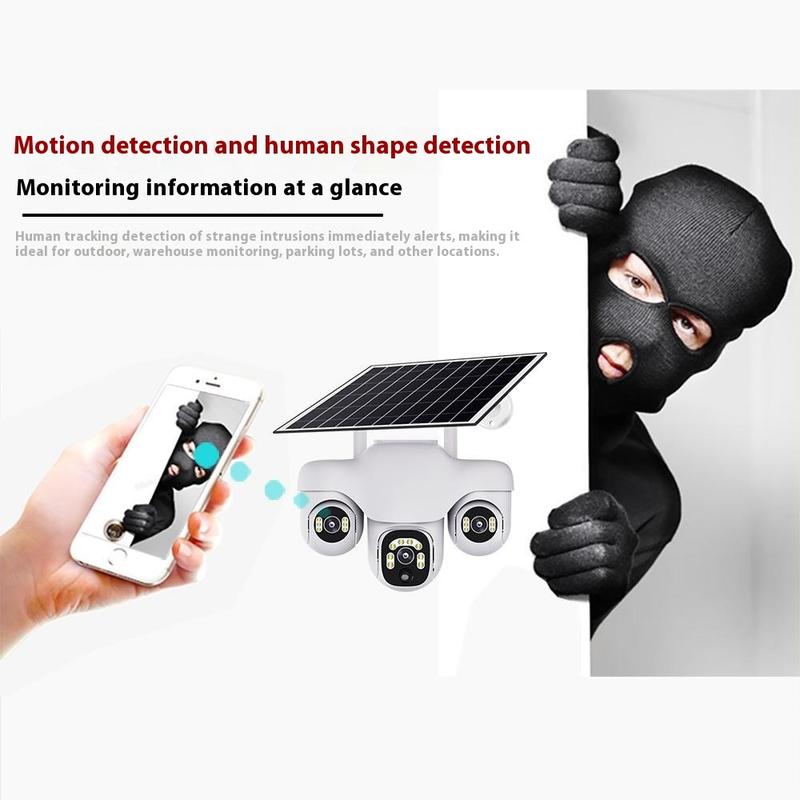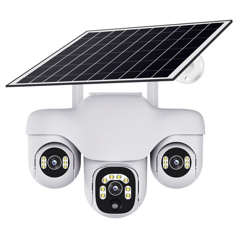 VTS31 V380 - Cameră de supraveghere PTZ alimentată cu energie solară, cu trei obiective - Cameră de supraveghere WiFi pentru exterior, cu detectare a mișcării