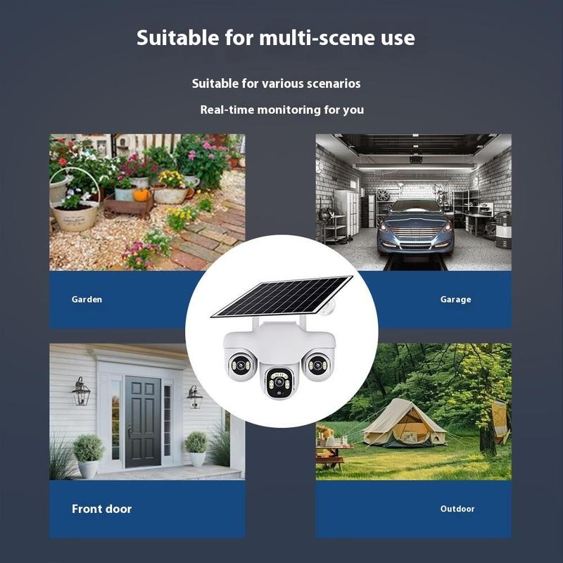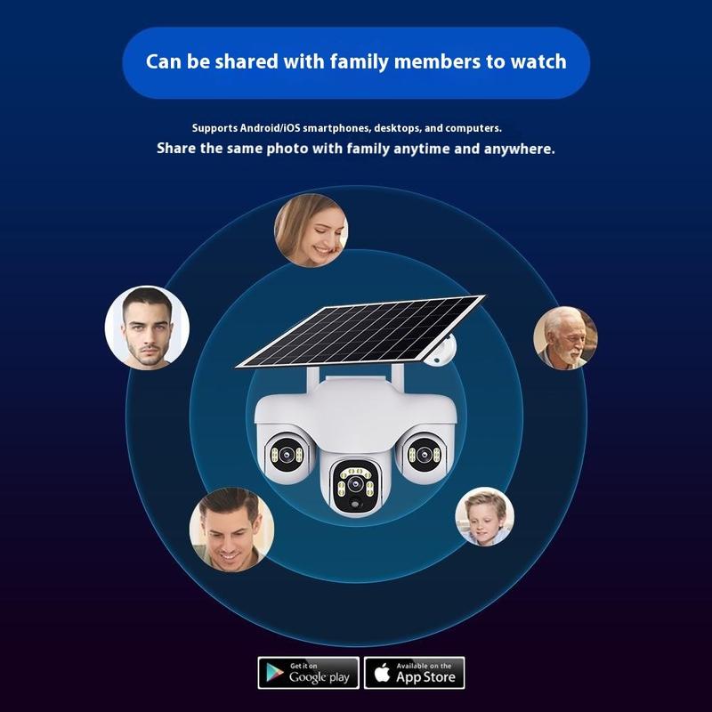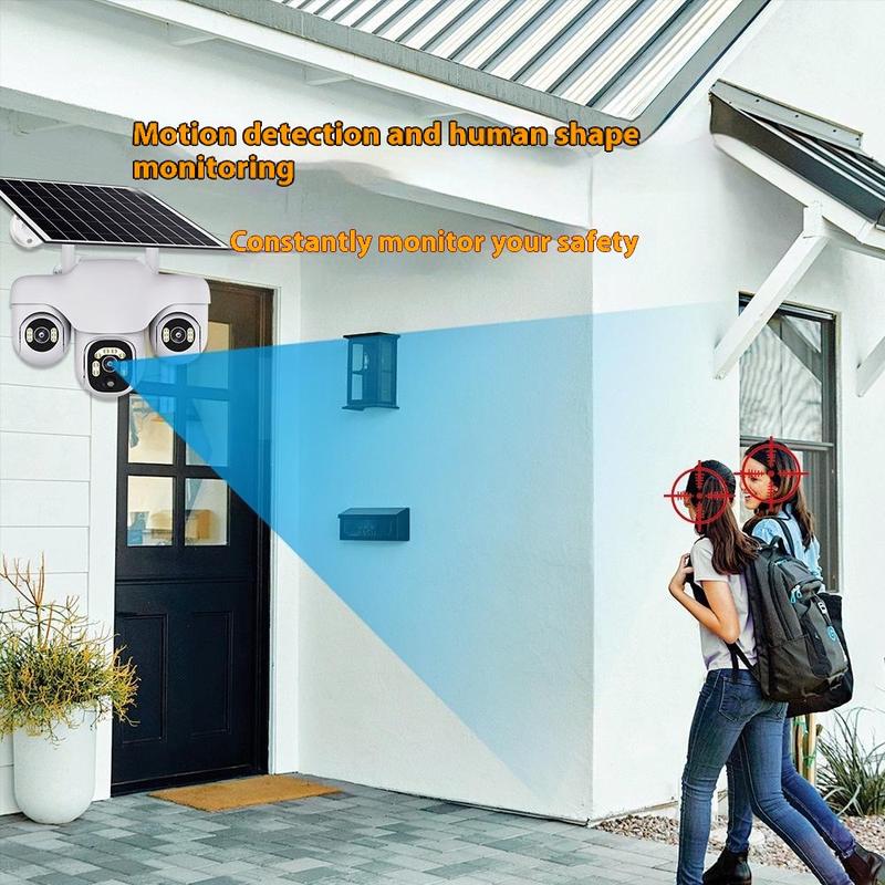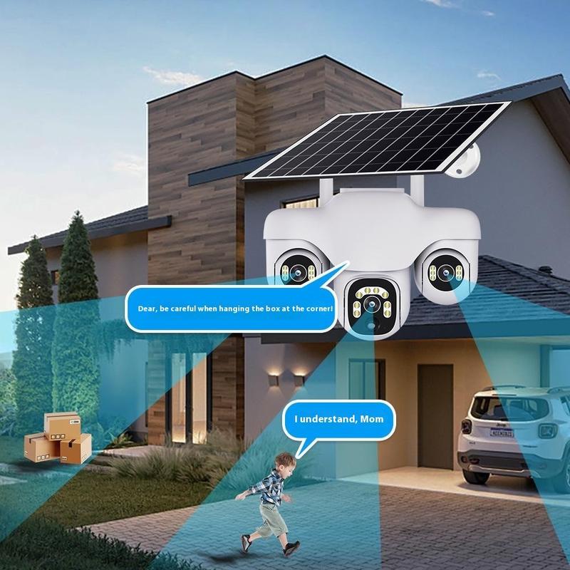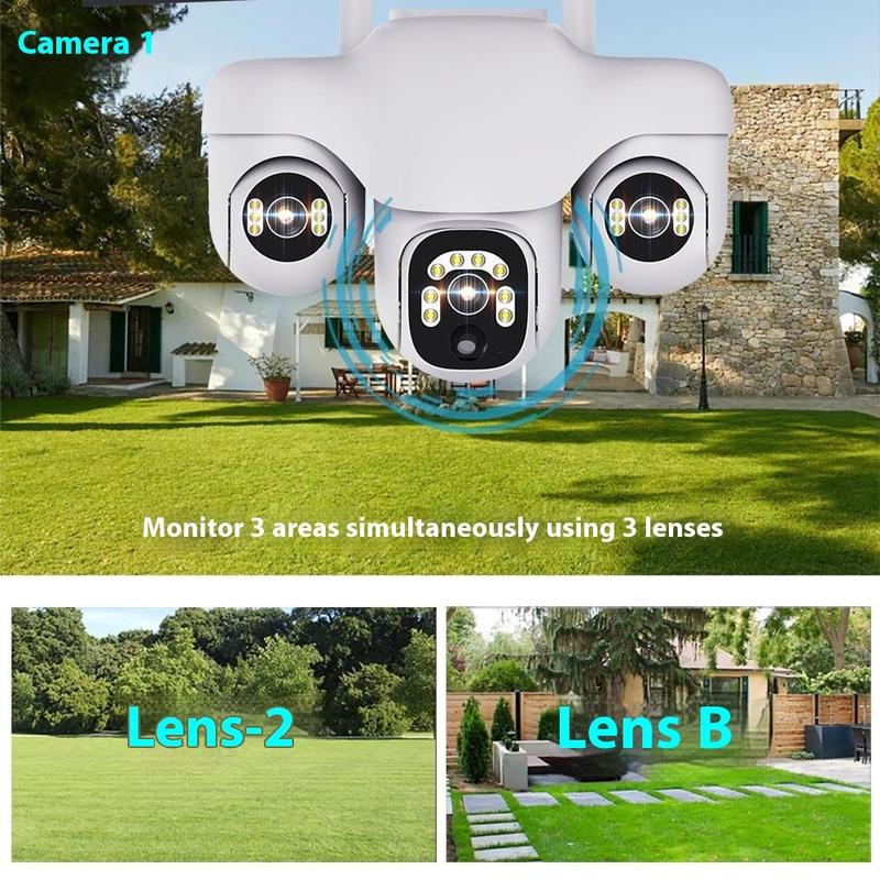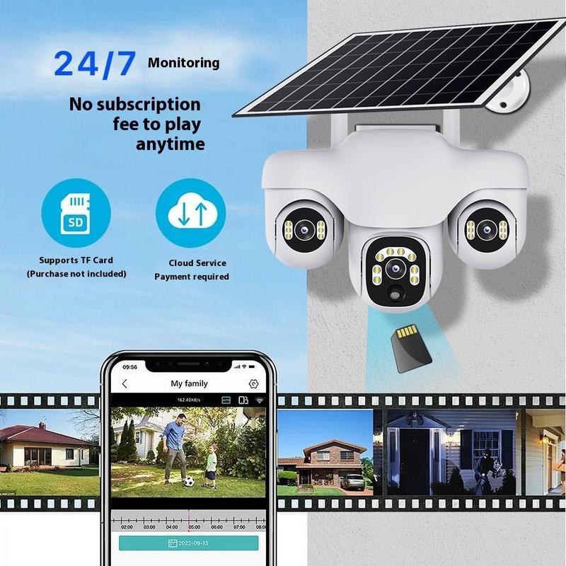 VTS31 V380 - Cameră de supraveghere PTZ alimentată cu energie solară, cu trei obiective - Cameră de supraveghere WiFi pentru exterior, cu detectare a mișcării
