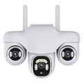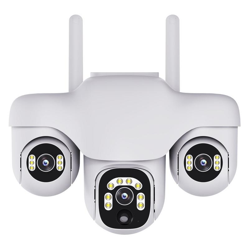 Acest model combină acoperirea panoramică, funcțiile inteligente de detectare și monitorizarea nocturnă într-un singur design adaptat pentru exterior. Datorită configurației cu trei lentile și structurii PTZ rotative, poate monitoriza o zonă mult mai extinsă decât multe camere standard cu o singură lentilă, contribuind la reducerea unghiurilor moarte din jurul proprietății dvs.