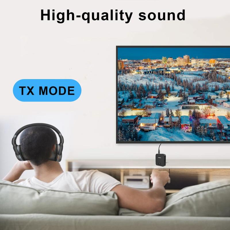 În modul TX, adaptorul trimite audio de la dispozitive non-Bluetooth, cum ar fi televizoare, playere MP3, playere DVD sau PC-uri la căști sau difuzoare Bluetooth. Ideal pentru vizionarea TV până târziu în noapte, fără a-i deranja pe ceilalți.