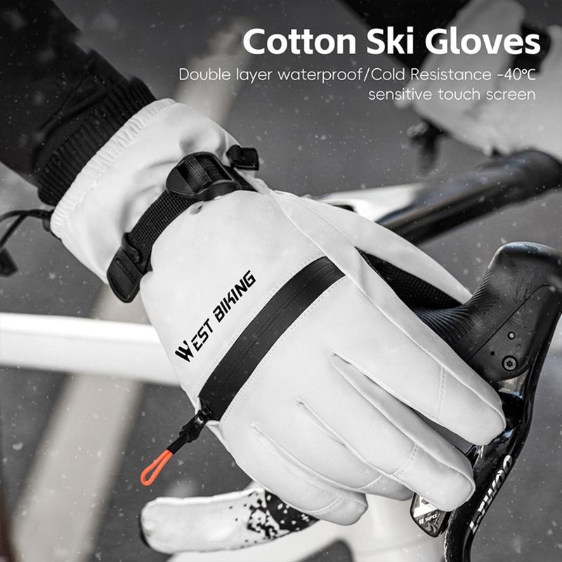 West Biking YP0211271 Mănuși de schi impermeabile - Mănuși de ciclism cu ecran tactil, rezistente la vânt, de iarnă, cu buzunar cu fermoar