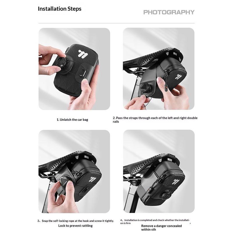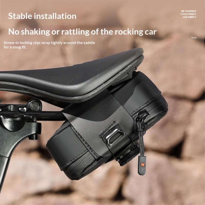 Această geantă de șa este ideală pentru cicliștii care preferă echipamentul ușor, fără a sacrifica practicitatea. Sistemul de auto-blocare sigur asigură că geanta rămâne ferm în poziție chiar și pe teren accidentat, în timp ce spațiul de depozitare compact de 0.2L păstrează articolele esențiale la îndemână. Construcția sa durabilă o face un companion de încredere pentru plimbările zilnice și excursiile mai lungi cu bicicleta.