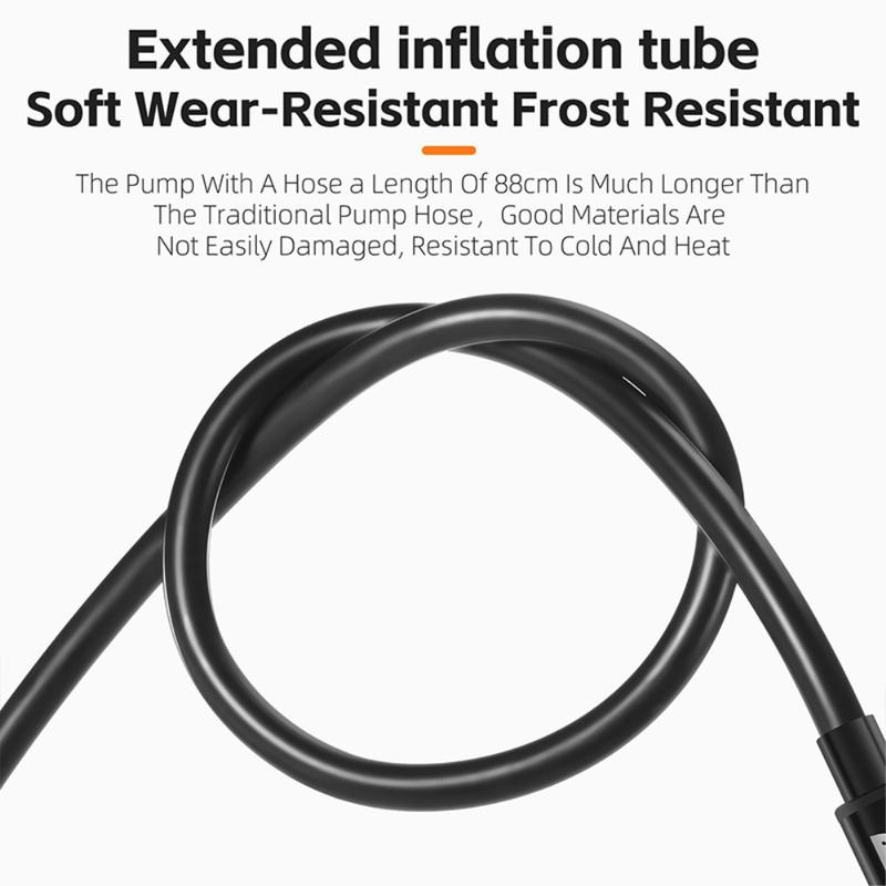Furtun de aer extra-lung: Dispunând de un furtun semnificativ mai lung în comparație cu pompele tradiționale, oferind un confort excepțional, permițând utilizatorilor să poziționeze pompa liber în timpul funcționării