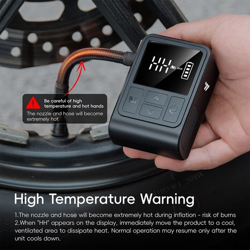 Acest compresor de aer portabil WEST BIKING este ideal pentru motocicliștii care doresc un umflator fiabil și ușor de transportat. Funcția sa presetată permite umflarea nesupravegheată, în timp ce afișajul digital asigură o presiune precisă de fiecare dată. Fie că mergeți cu bicicleta, cu motocicleta sau umflați mingi sportive, această pompă combină confortul, puterea și precizia într-un singur dispozitiv compact.