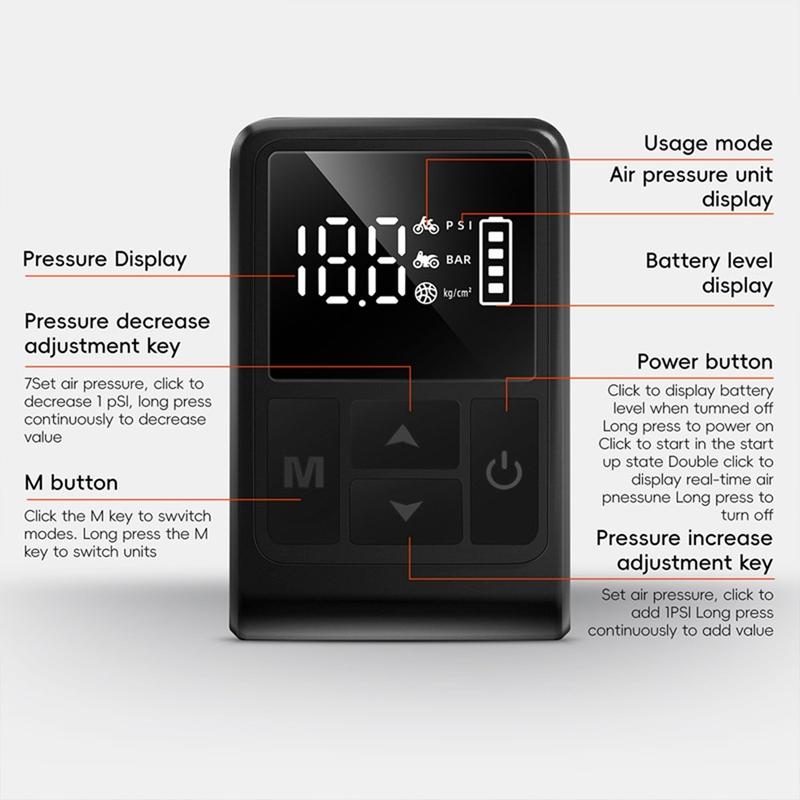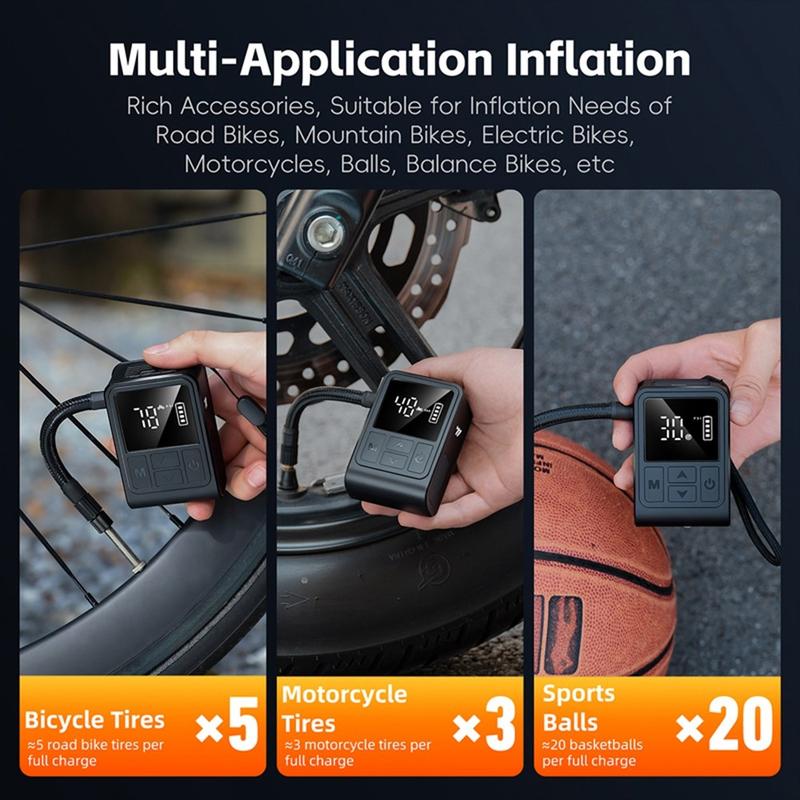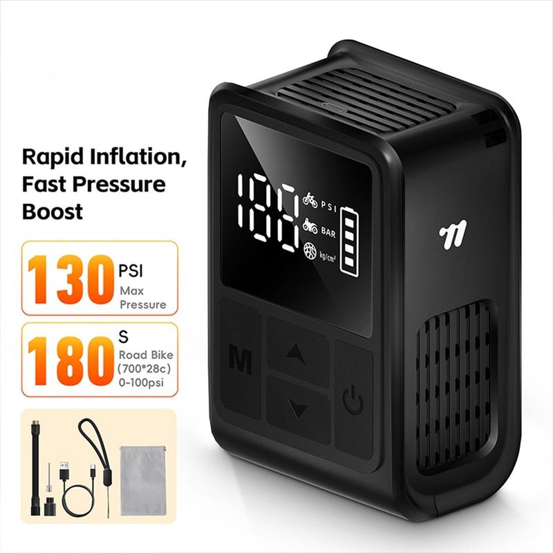 - Capacitate mare de presiune - Umflă până la 130 PSI, potrivit pentru majoritatea bicicletelor, motocicletelor și echipamentelor sportive.
