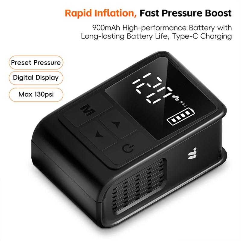 Pompa electrică de înaltă presiune pentru biciclete WEST BIKING YP0711196 este un compresor de aer compact și puternic, conceput pentru bicicliști, motocicliști și utilizatorii obișnuiți. Cu o capacitate maximă de 130 PSI, această pompă portabilă umflă rapid anvelopele și echipamentele sportive cu ușurință. Afișajul digital încorporat oferă citiri precise, în timp real, ale presiunii, în timp ce funcția de presetare oprește automat umflarea odată ce este atinsă presiunea dorită. Alimentată de o baterie reîncărcabilă de 900mAh, această pompă oferă confort, fiabilitate și portabilitate pentru utilizare acasă sau în deplasare.