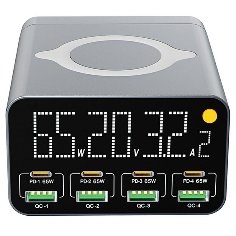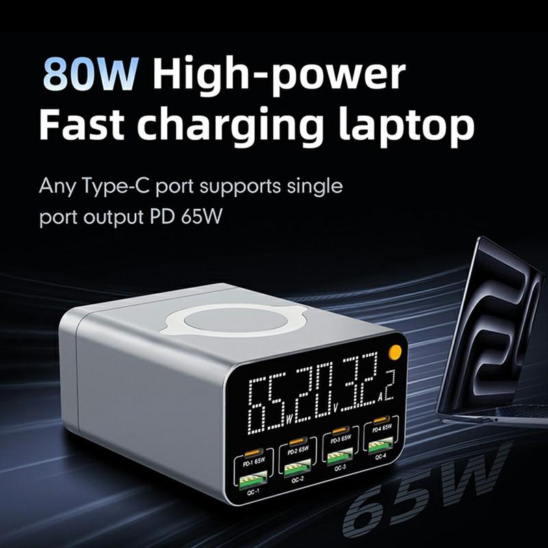 Stație de încărcare de birou WLX-M3 80W 9-în-1 GaN - Încărcător rapid Multi-Port USB-C/USB cu încărcare wireless (EU Plug)