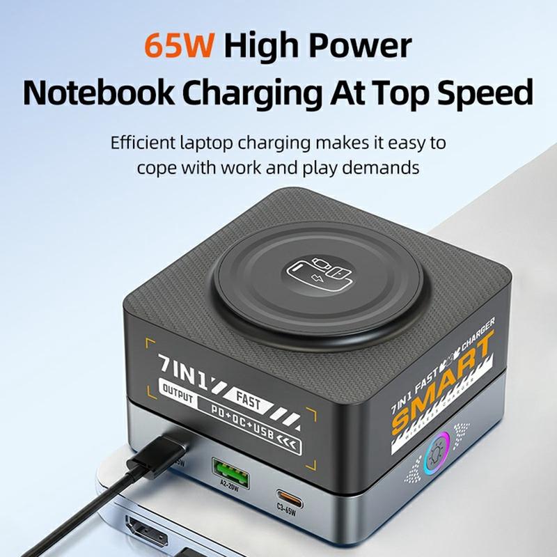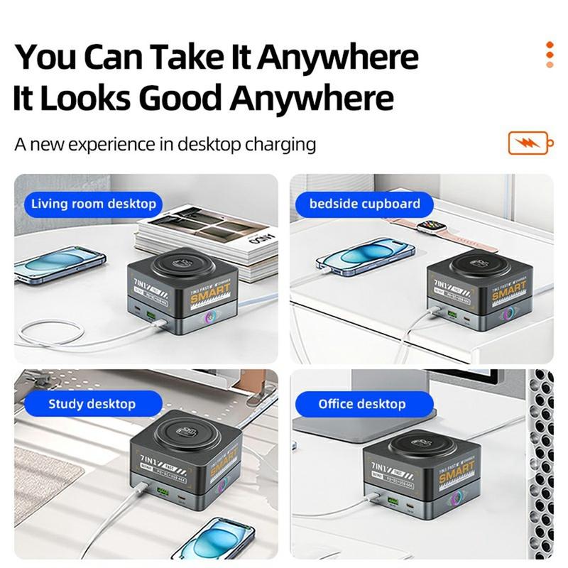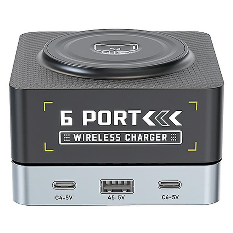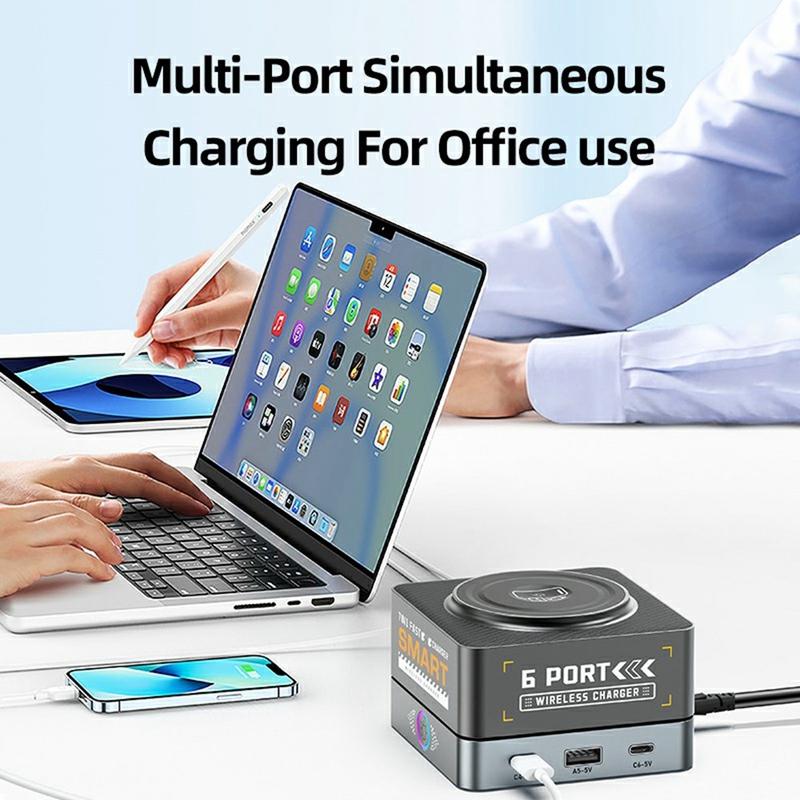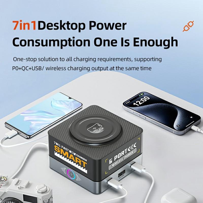 Încărcare 7 în 1 cu 6 porturi + pad wireless magnetic