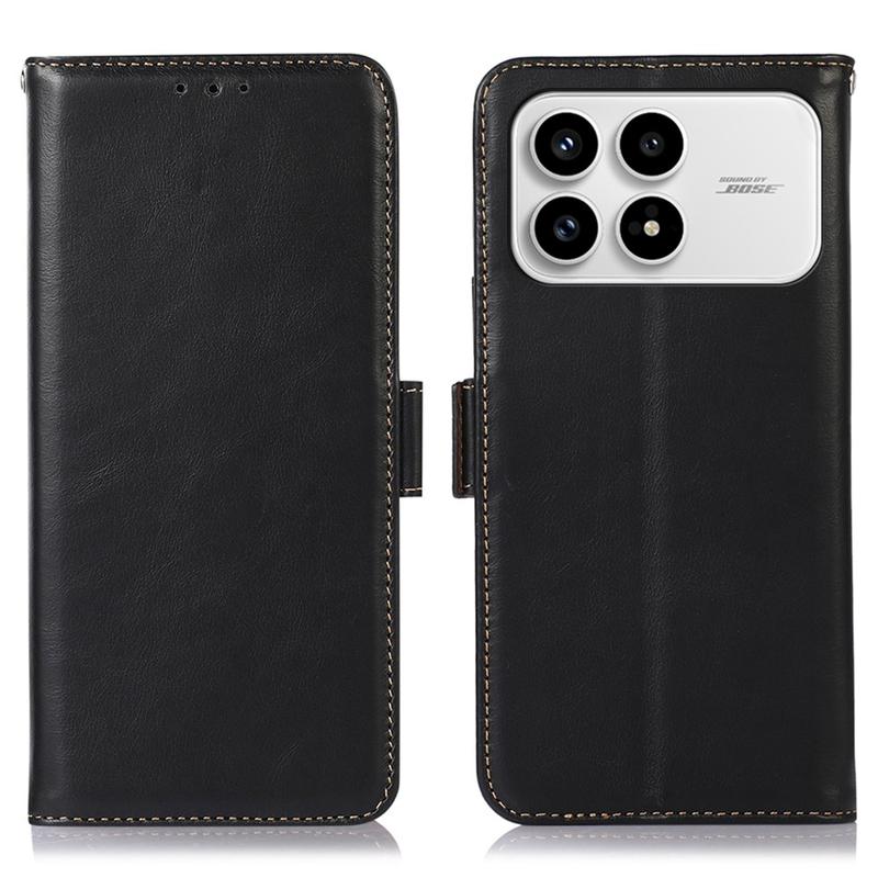 Experimentați eleganța atemporală și caracterul practic de zi cu zi cu husa portofel din piele pentru Xiaomi Redmi K90, Poco F8 Pro. Confecționată din piele naturală de vacă și dotată cu protecție RFID, această husă folio multifuncțională combină luxul, securitatea și confortul - fiind accesoriul all-in-one perfect pentru smartphone-ul dvs.