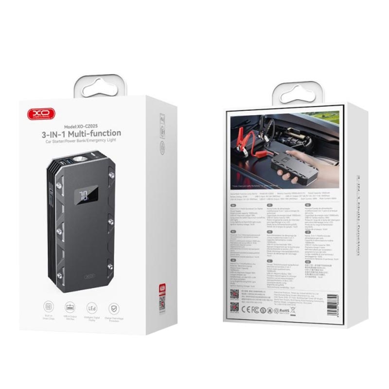 Fiți pregătit pentru momentele în care bateria este descărcată cu XO CZ025: o soluție compactă 3 în 1 care combină un dispozitiv de pornire pentru mașină, o bancă de energie portabilă și o lanternă LED strălucitoare. Construit pentru șoferii și călătorii de zi cu zi, acesta oferă putere de pornire fiabilă pentru vehiculele de 12 V și vă menține telefonul și gadgeturile încărcate prin intermediul ieșirilor USB duble. Afișajul digital facilitează verificarea stării bateriei dintr-o privire, în timp ce lanterna multimodală (inclusiv SOS) este perfectă pentru situațiile de pe marginea drumului.