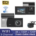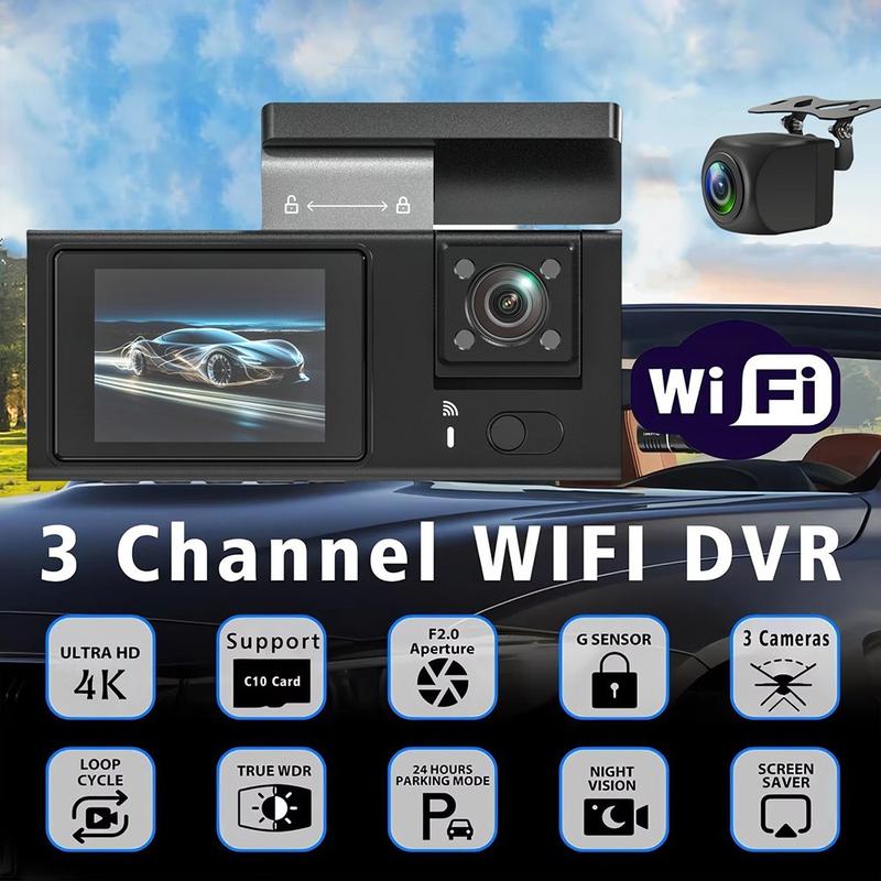 Y08 4K Triple-Lens Dash Cam - DVR auto față, interior și spate cu WiFi, ecran IPS de 2" și senzor G