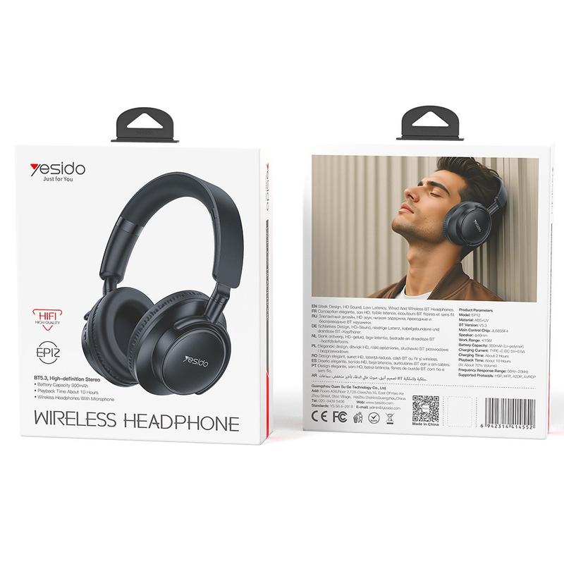 Yesido EP12 Căști Bluetooth Over-Ear - Confort cu presiune zero, mod dual cu fir / fără fir, suport pentru asistentul vocal