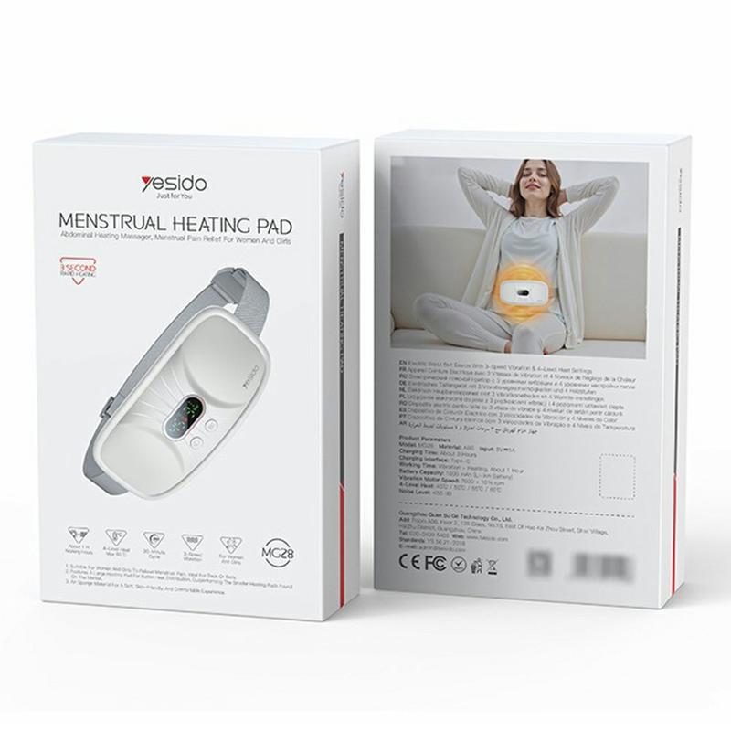 Centura electrică de masaj Yesido MG28 pentru abdomenul inferior și talie - 45-60 °C, 3 moduri de vibrație, afișaj digital, ciclu de 30 de minute