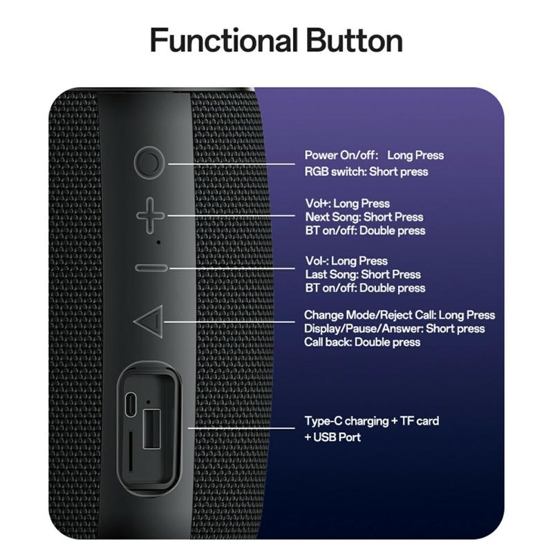 Sistemele de sunet RGB utilizează modele de iluminare sincronizate care reacționează la ritmurile muzicii, creând o atmosferă multisenzorială populară în configurațiile de sunet moderne. Bluetooth 5.3 asigură conexiuni mai rapide și mai eficiente din punct de vedere energetic, prelungind atât timpul de redare, cât și sănătatea generală a bateriei - făcând din YSW39 o boxă portabilă pregătită pentru viitor.