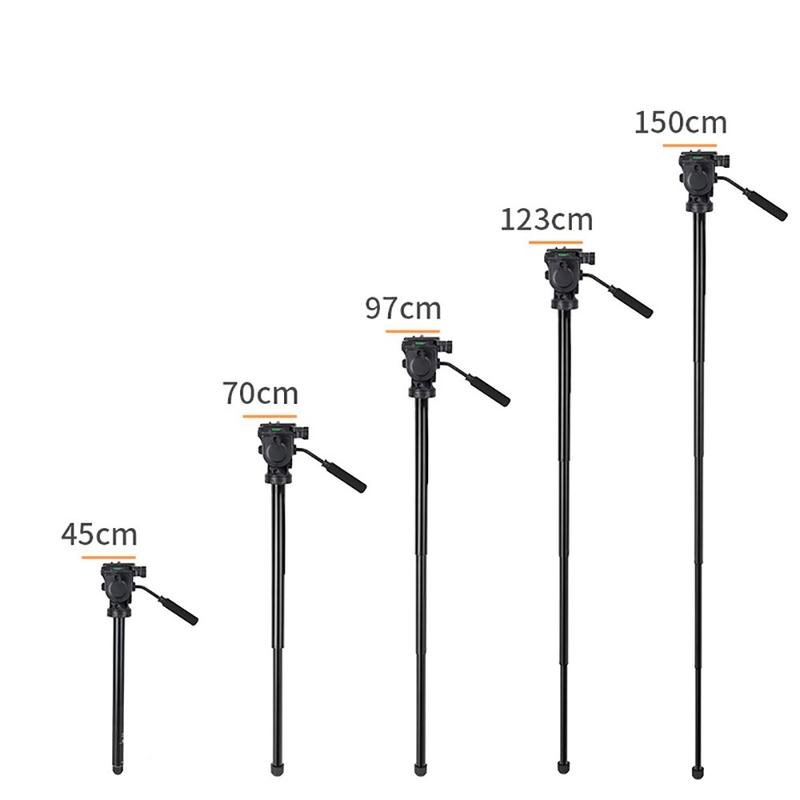 Cu patru secțiuni de picioare telescopice, puteți regla rapid înălțimea de la 54 cm (21 in) la 167 cm (65,75 in). Blocarea independentă a picioarelor permite poziționarea pe teren accidentat, iar coloana centrală suportă fotografia cu unghi redus sau macro.